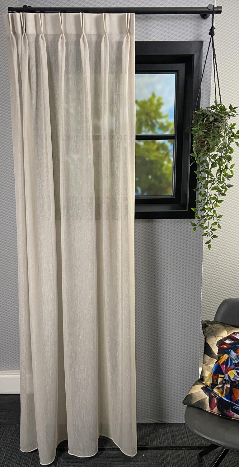 Gordijnstof Abelia wordt volledig op maat gemaakt om perfect aan te sluiten bij jouw interieur. Voor het mooiste resultaat adviseren wij een wave plooi of dubbele plooi, die de stof op een stijlvolle manier laat vallen. Voor een nette afwerking raden wij aan om de onderzijde te voorzien van een onderzoom, zodat de gordijnen strak en elegant hangen.
