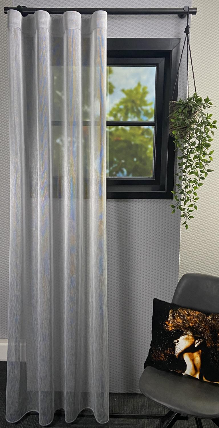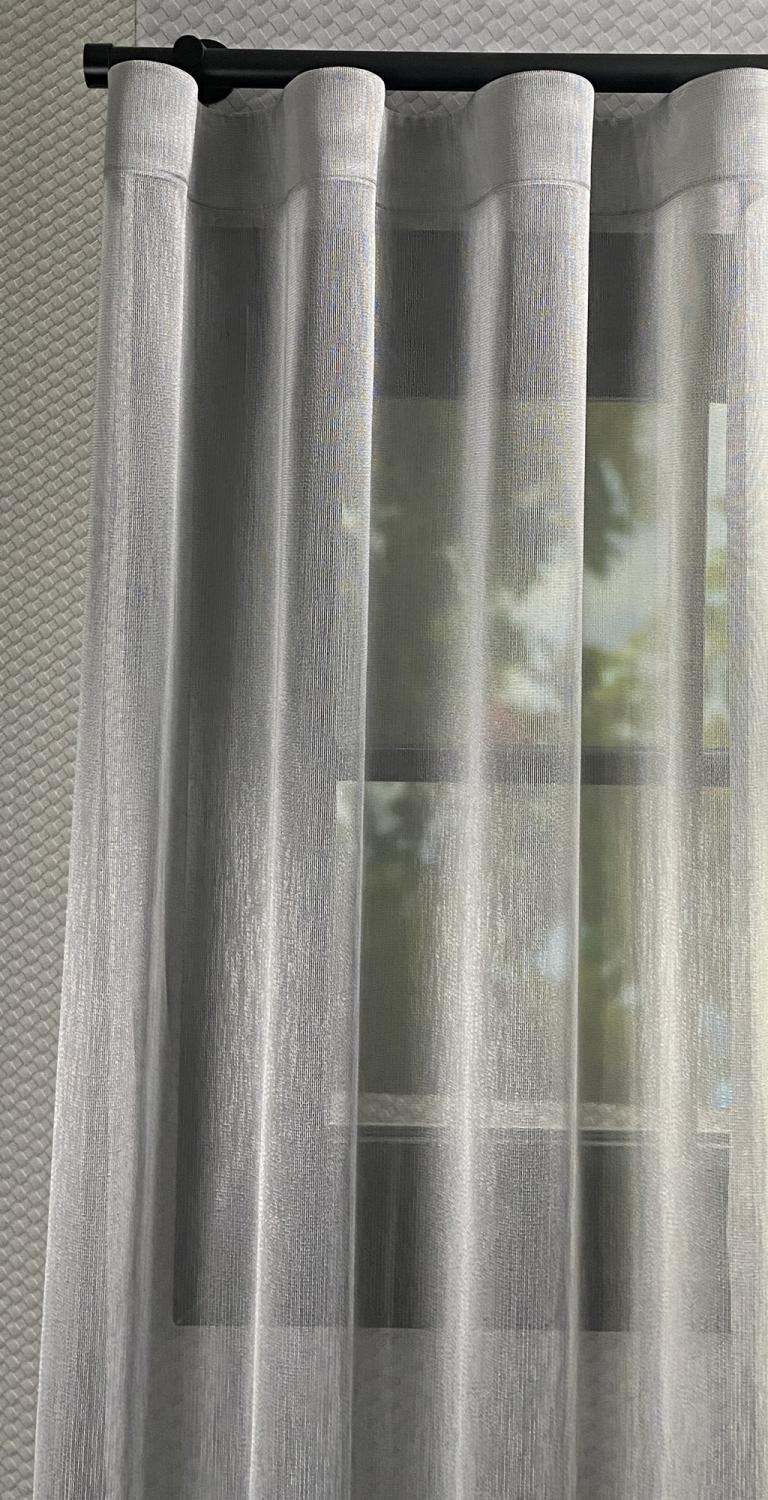 Dit is een zeer transparante inbetween waar je van binnen uit makkelijk naar buiten kunt kijken. Doordat de stof met dunne draadjes dicht op elkaar is geweven is het lastig om overdag van buiten naar binnen te kijken. Omdat er een mooie glans over de stof zit, is het een stijlvolle inbetween die in elk interieur past.