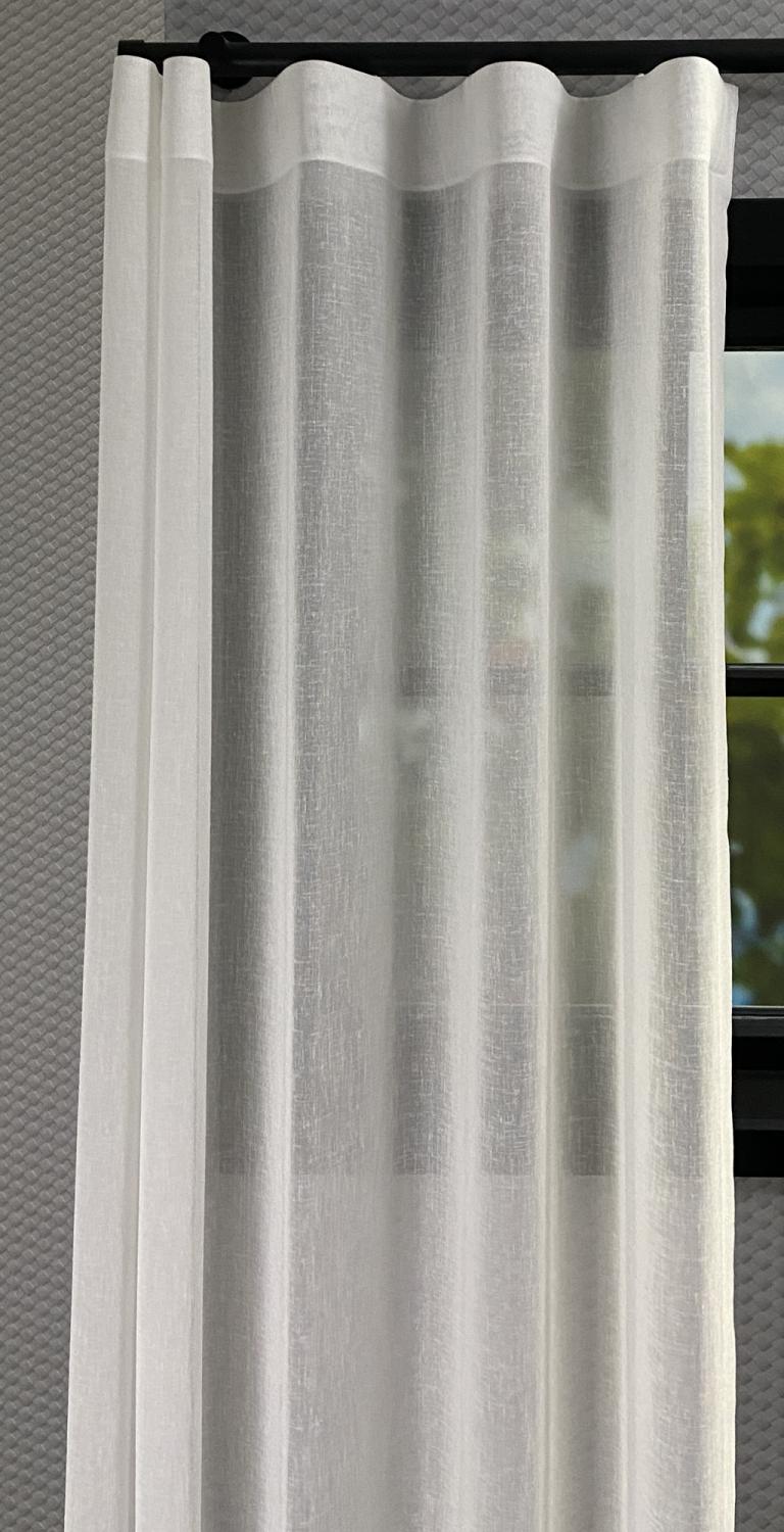 Deze hele transparante inbetween valt bijna in de categorie vitrage maar wij noemen hem toch inbetween. Ben je op zoek naar een gordijn dat gemakkelijk wasbaar (30 graden) is , niet kreukt, krimpt of uithangt? De Discenta is dan het perfecte gordijn voor je. De samenstelling is 100% polyester, en zeer soepelvallend. Ons advies is: kies voor een triple plooi en dit gordijn valt als een plaatje in de plooi.