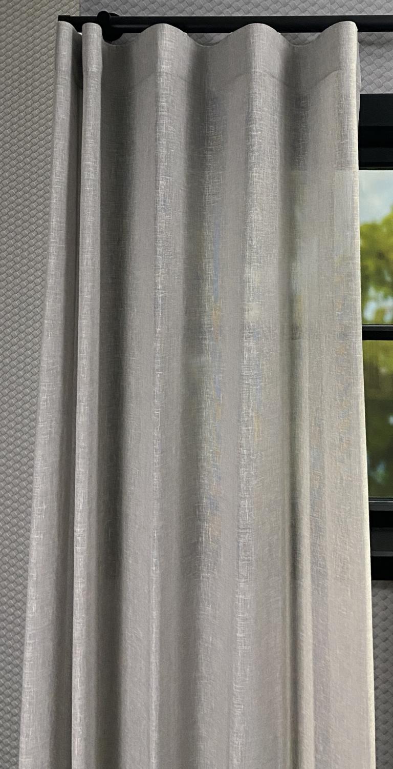 Bij ons wordt gordijnstof Zinnia volledig op maat gemaakt, zodat het perfect in jouw interieur past. De stof is 300 cm kamerhoog, wat betekent dat we probleemloos gordijnen kunnen confectioneren tot een hoogte van 285 cm. Voor de mooiste uitstraling raden wij een wave-plooi of dubbele plooi aan, afgewerkt met een loodveter of onderzoom voor een strakke en luxe afwerking.