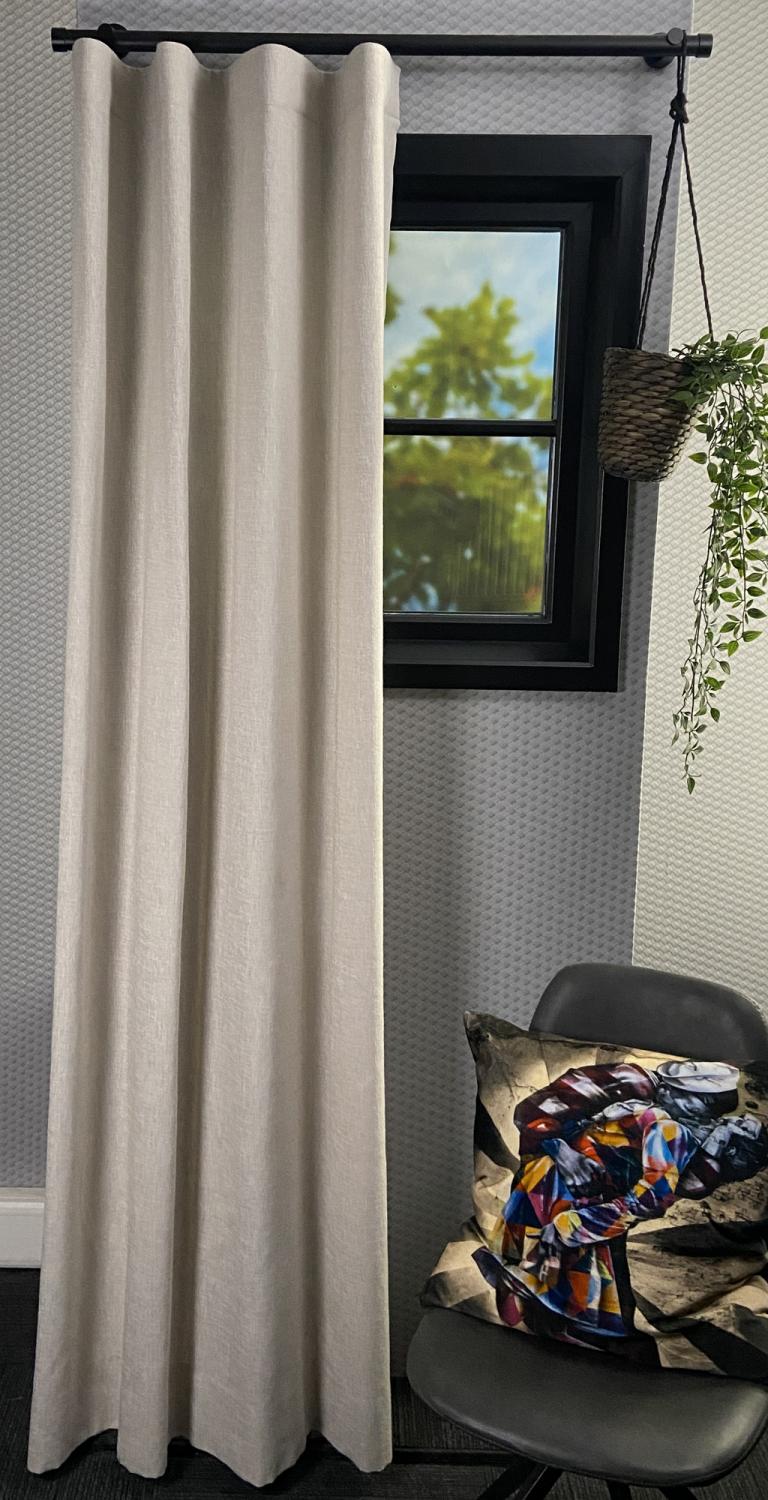 • Dikke structuur: De dikkere stof zorgt niet alleen voor een hoogwaardige uitstraling, maar ook voor extra isolatie en geluidsdemping, wat bijdraagt aan een comfortabelere woonomgeving.