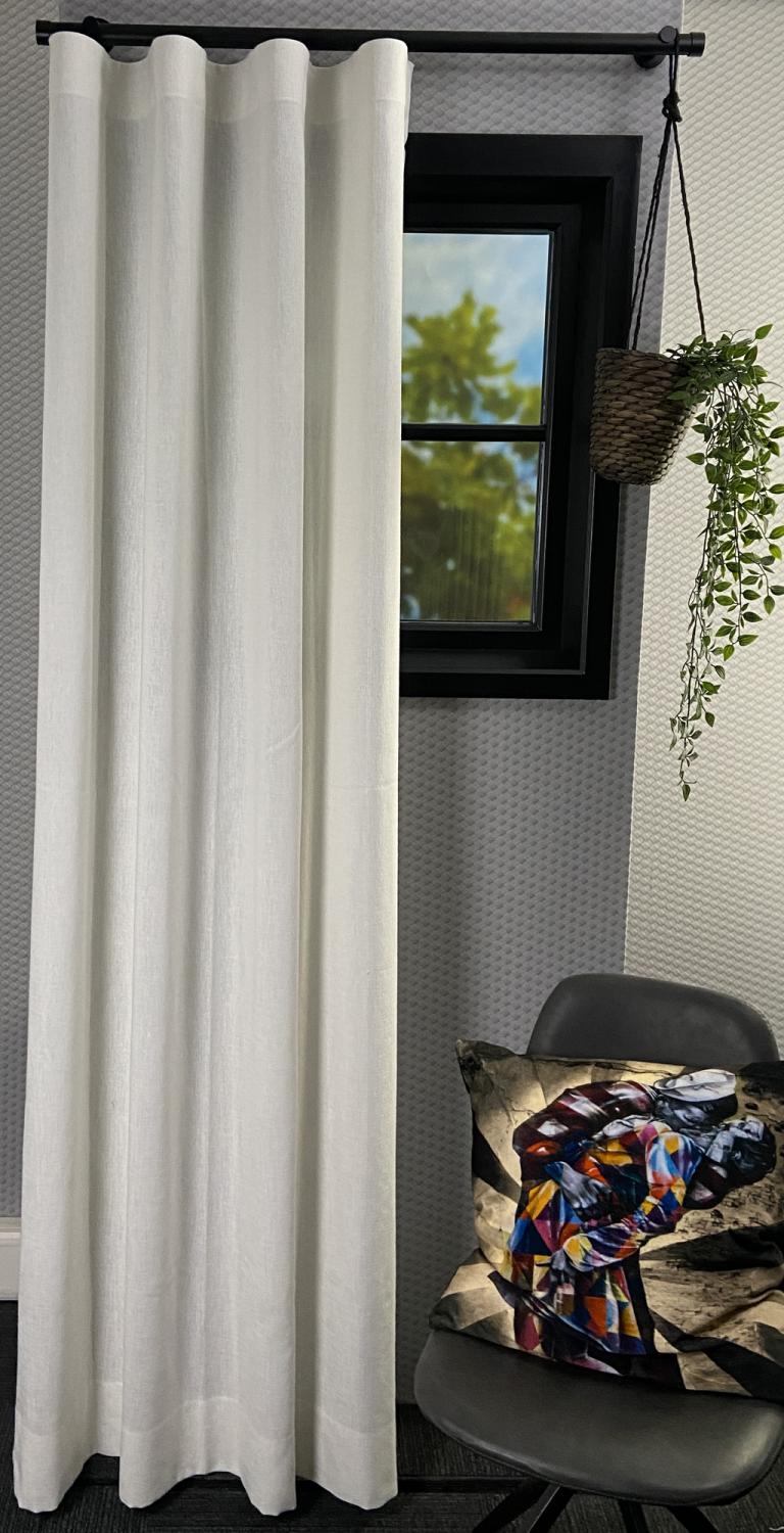 Met deze gordijnstof geef je jouw interieur een boost voor in het voorjaar/zomer. De gordijnstof ziet er erg stug uit maar dit is hij zeker niet! De stugge structuur is er in gebracht door middel van een tweede witte draad die door de stof is geweven. De witte draad geeft vooral bij donkerdere kleuren een mooi en luchtig effect mee. Omdat de gordijnstof een soepele plooival heeft, maakt het niet veel uit voor wat voor plooi je kiest.