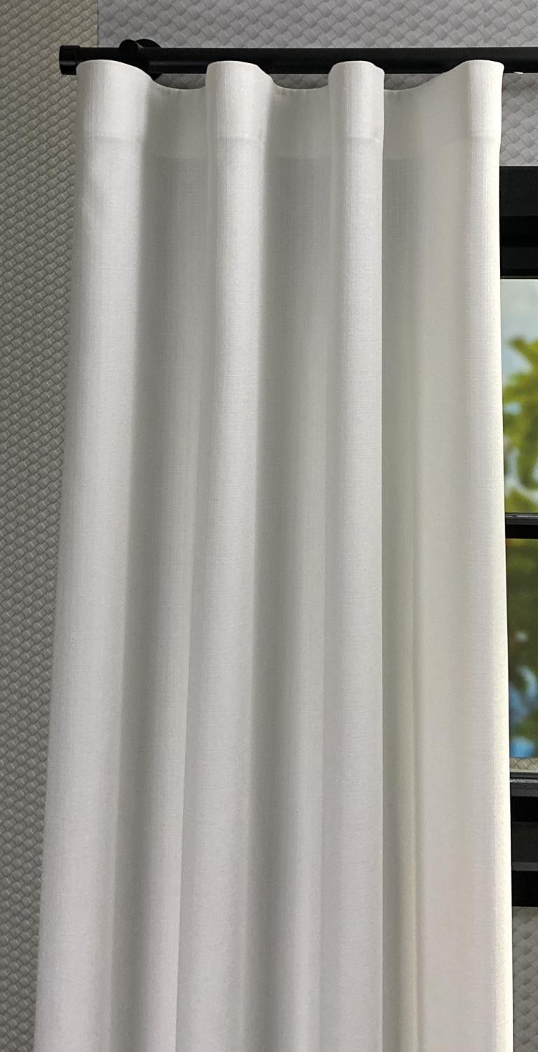 • Soepel vallende stof: Voor een elegante uitstraling adviseren wij een dubbele plooi of wave plooi, afgewerkt met een onderzoom.