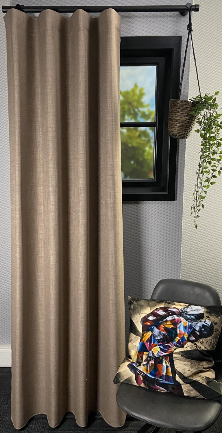 Dit is een erg soepel verduisterend gordijn waarbij vrijwel alle plooien mooi uitpakken. Laat je het gordijn maken met een dubbele of wave plooi, dan heb je altijd een perfect hangend gordijn. Voor in de categorie verduisterende gordijnen is dit een erg licht gordijn, waardoor het ook zeer makkelijk te bevestigen is. Het unieke aan deze stof is dat de verduisterende coating aan de achterkant dezelfde kleur heeft als aan de voorkant. Vaak is de coating bij verduisterende gordijnen namelijk wit.