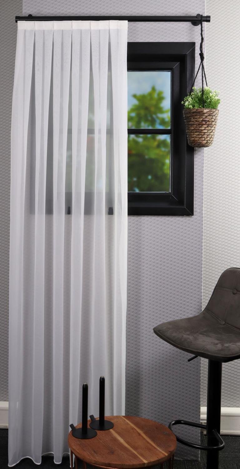 Klassieke vitrage met zeer mooie glans en slubgaren. De onderzijde van deze vitrage is standaard afgewerkt met een loodveter wat zorgt voor een mooie plooival. Dit is een erg chique vitrage met een structuur die jouw interieur helemaal compleet maakt. Laat het gordijn maken met een dubbele plooi voor een mooi effect. Bij een dubbele plooi wordt namelijk meer stof gebruikt dan bij een enkele plooi waardoor het gordijn voller zal vallen.