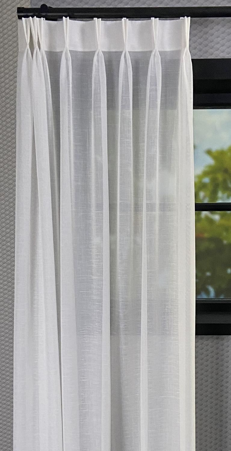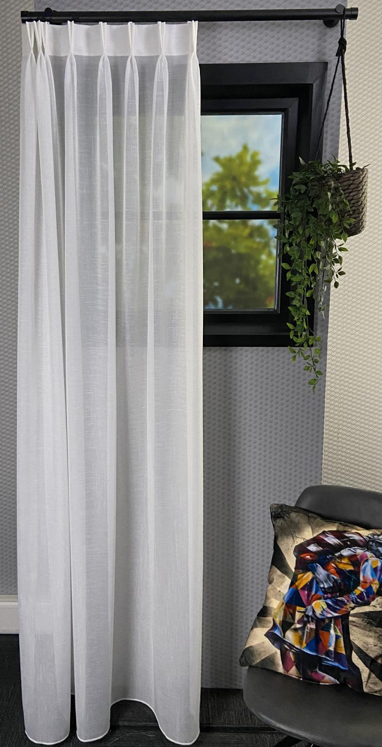 Gordijnstof Arum wordt volledig op maat gemaakt voor een perfecte pasvorm. Voor het mooiste resultaat adviseren wij een dubbele of triple plooi, wat zorgt voor een volle en luxueuze valling. Om de vitrage strak en mooi te laten hangen, raden wij een loodveter onderin aan. Dit extra gewicht zorgt ervoor dat de stof beter op zijn plek blijft en een prachtige plooival krijgt.
