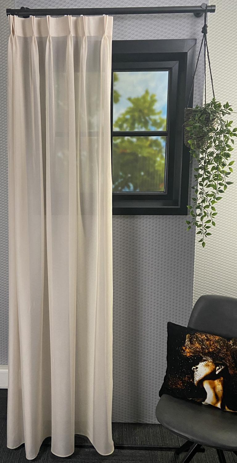 Gordijnstof Salvia is kamerhoog (300 cm) en kan worden geconfectioneerd tot een hoogte van 290 cm. Voor het mooiste resultaat adviseren wij een dubbele plooi, triple plooi of een wave plooi. Onze gordijnen worden volledig op maat gemaakt, zodat ze perfect aansluiten bij jouw interieur en wensen.